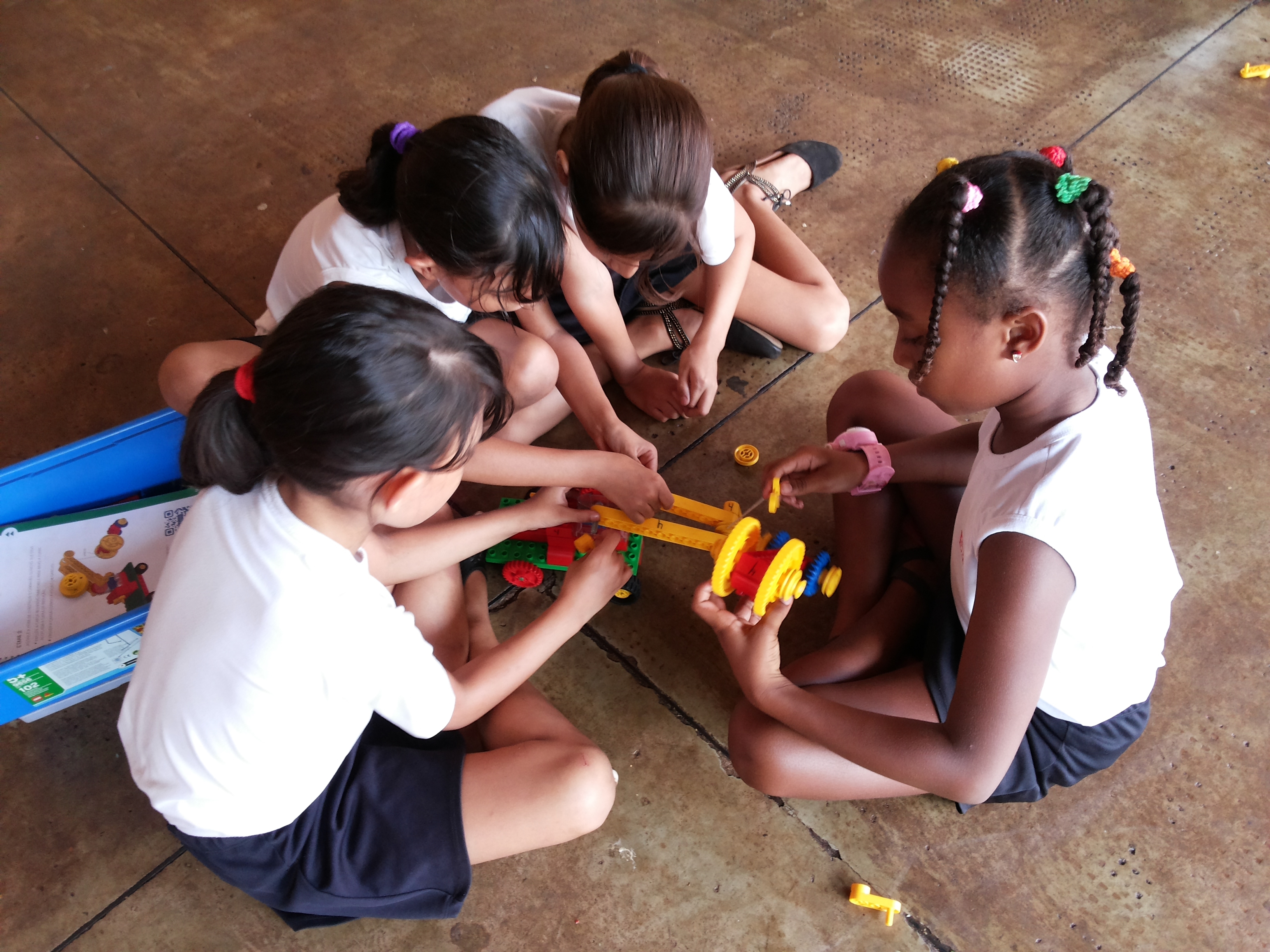 Os alunos aprendem e desenvolvem o raciocínio com peças de LEGO.