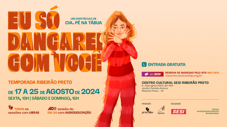 O Centro Cultural do Sesi Ribeirão Preto receberá nos próximos dois finais de semana o espetáculo “Eu só dançarei com você”. A apresentação é gratuita, de classificação livre e aberta ao público. Reserve seu ingresso online através do Sistema Meu Sesi.