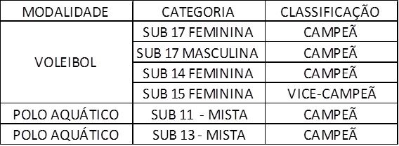 Quadro geral de conquistas do SESI Ribeirão Preto na Liga SESI SP Treinamento Esportivo 2018