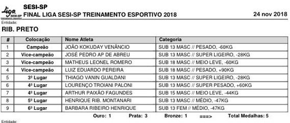 Classificação Final do Judô de Ribeirão Preto