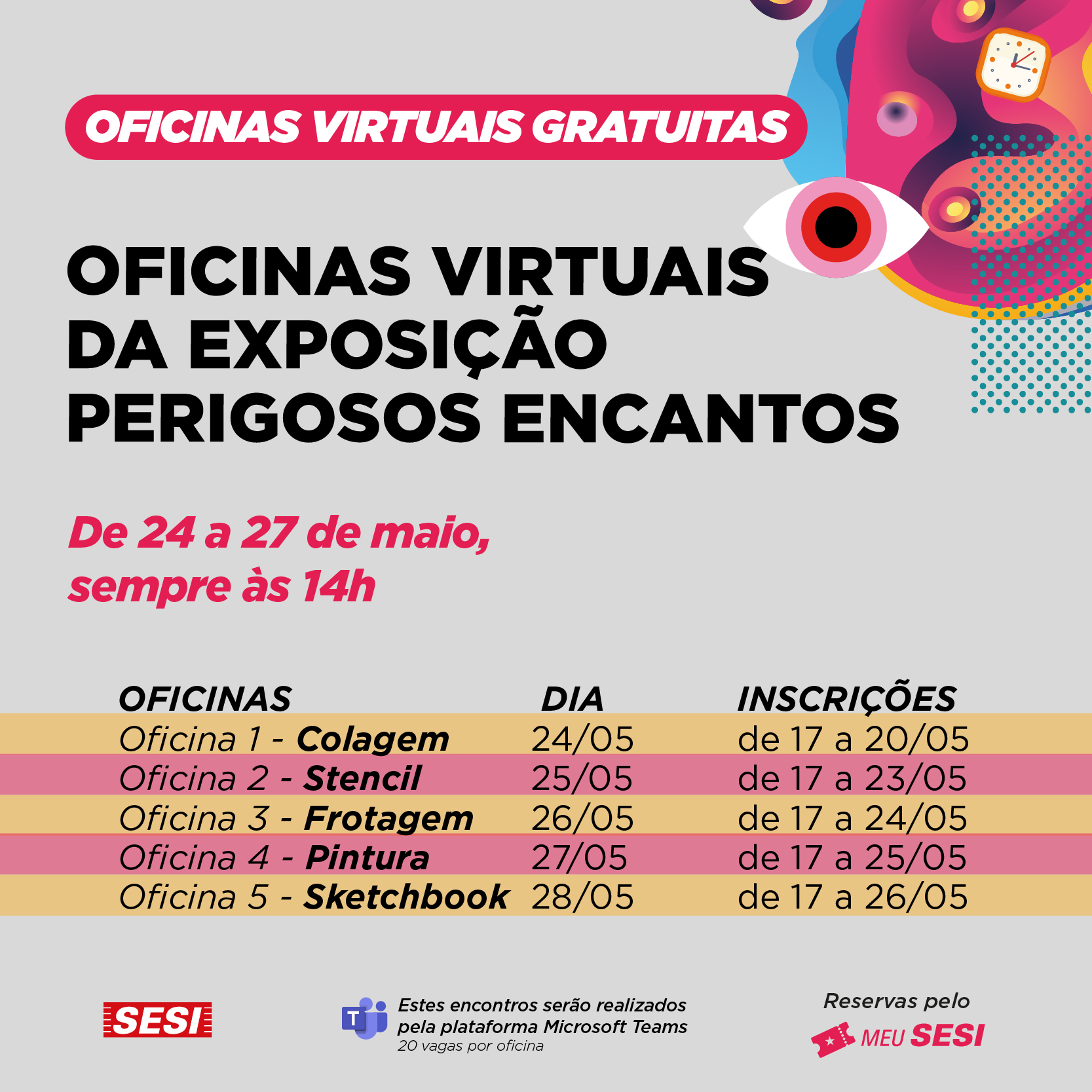 Estão abertas as inscrições para as oficinas virtuais gratuitas de Artes Visuais inspiradas na exposição Perigosos Encantos, do artista britânico Liam Porisse e que está em exibição no Espaço Galeria do Sesi Ribeirão Preto. Os interessados devem se inscrever no Meu SESI, através do link: https://www.sesisp.org.br/evento/4571550c-2131-455b-b734-2de9c79b0cac/oficinas-virtuais-perigosos-encantos .